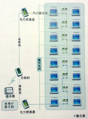 隨著“電力貓”的應用,也解決大型商業(yè)用戶多相用電的問題。億力電力的商業(yè)樓宇寬帶接入方案是通過在樓道電表間布置“電力橋”并在入戶的電線上加扣“耦合磁環(huán)”即可解決商業(yè)用戶多相用電的問題。