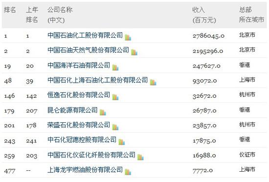 石油天然氣方面,上海龍宇燃油股份有限公司也首次加入500強(qiáng)陣營(yíng),位居第477位。