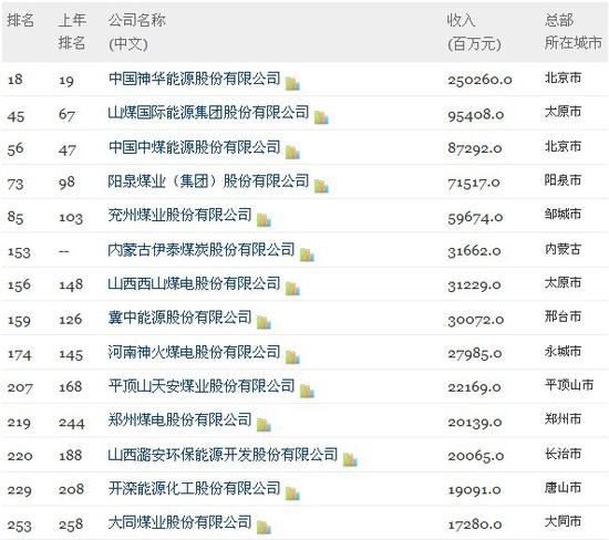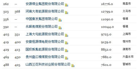 煤炭企業(yè)中,內(nèi)蒙古伊泰煤炭股份有限公司(第153位)、安源煤業(yè)集團(tuán)股份有限公司(第262位)、中國(guó)秦發(fā)集團(tuán)有限公司(第356位)、永暉焦煤股份有限公司(第392位)、永泰能源股份有限公司(第480位)五家公司,首次入圍今年的榜單。