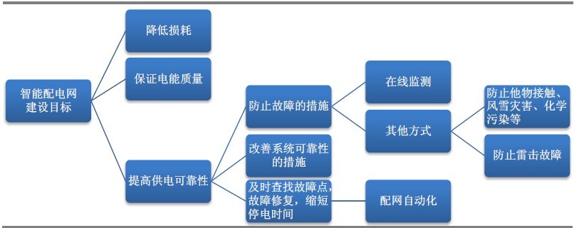 智能配電網(wǎng)的建設(shè)目標(biāo)包括三個方面:降低損耗、保證電能質(zhì)量和供電可靠性。其中電能質(zhì)量與損耗是相互的,損耗往往伴隨著電壓質(zhì)量的下降;所以實際上智能配電網(wǎng)的目標(biāo)為提高電能質(zhì)量和提升供電可靠性。